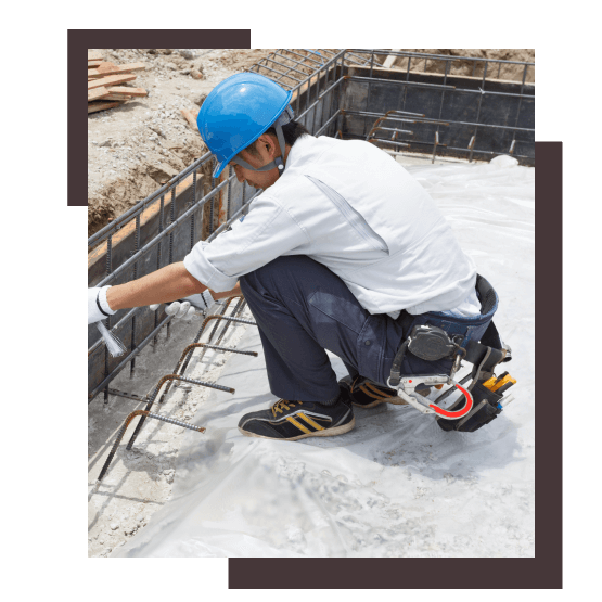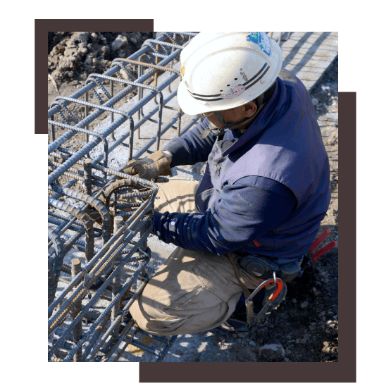 設計図から鉄筋の配置関係を把握し、現場に入ってきた資機材(鉄筋など)を設計図通りに組み立てる仕事です。 仕様書と図面を読める能力、配筋、段取りなどを経て、嵌合、結束でコンクリートを流し込む直前の骨組みを組むまでが仕事です。